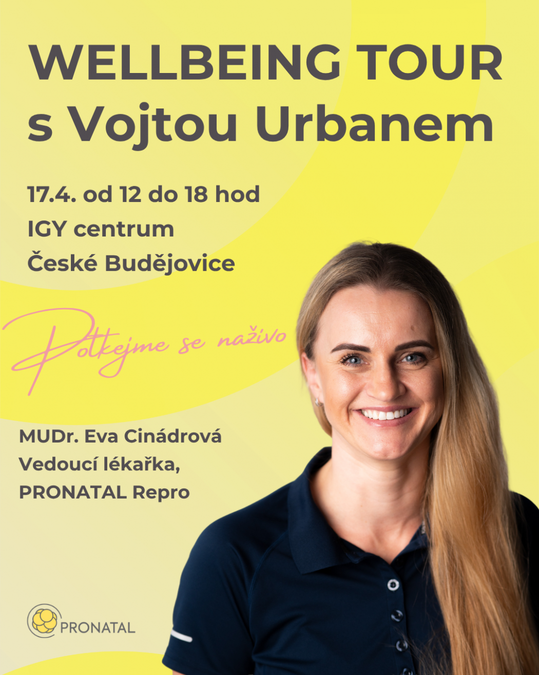 Pokud půjdete na Wellbeing Tour Vojty Urbana v Praze nebo v Českých Budějovicích, zastavte se u stánku PRONATAL.